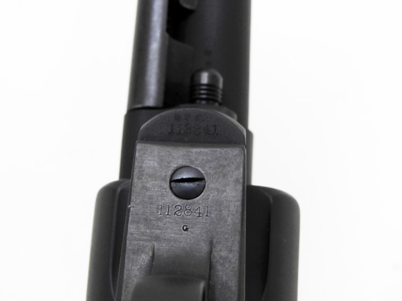 アメリカンウォールナット製ワンピースグリップにはインスペクターマークの焼印も再現しています。木製グリップ標準装備!!