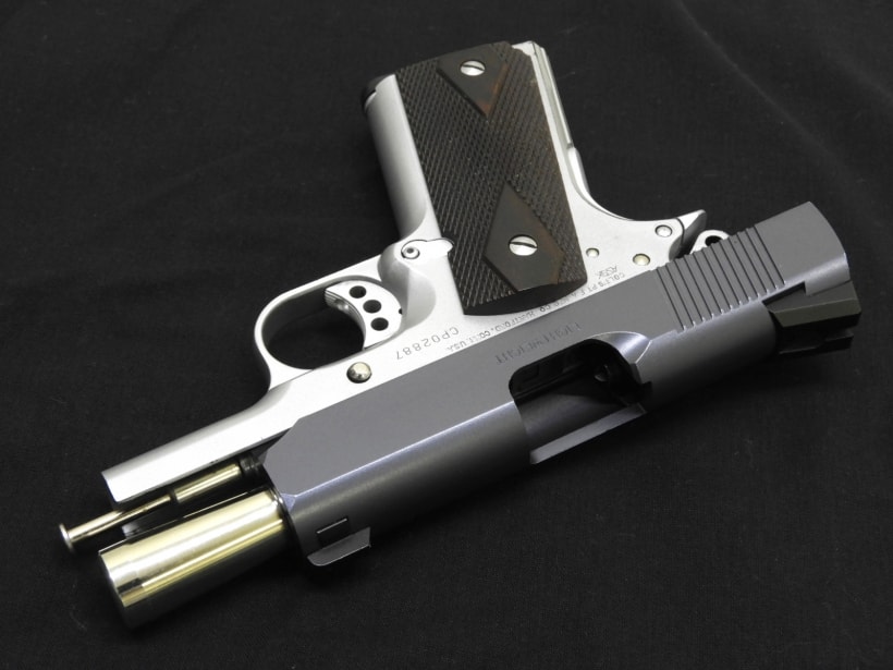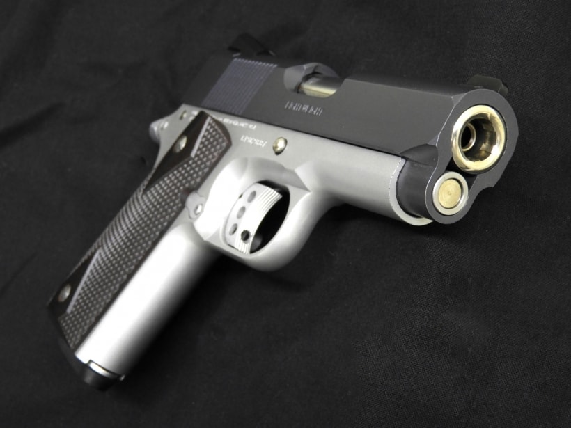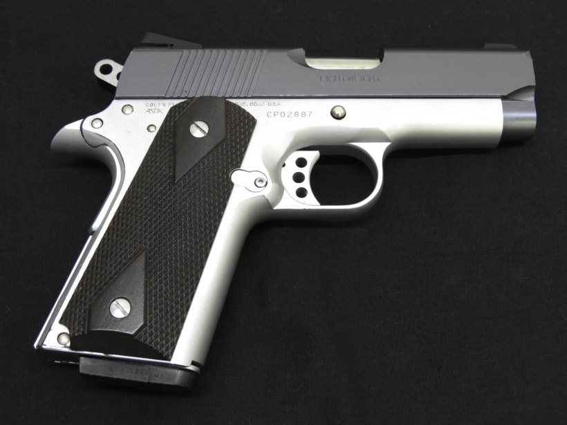 シリーズ90としてコルト社が発売したコンパクト45オートです。同社のオフィサーズ(3.5インチ)よりも更に小型化(3インチ)されており、ステンレス製のスライドと軽量アルミ合金製フレームで構成されている。