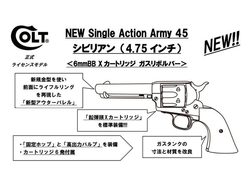 [マルシン] NEW SAA.45 シビリアン 《4.75インチ/ブラックHW》 6mmXカートリッジガスリボルバー (新品) 製品詳細画像 ※画像は前回ロットモデルの物となります。