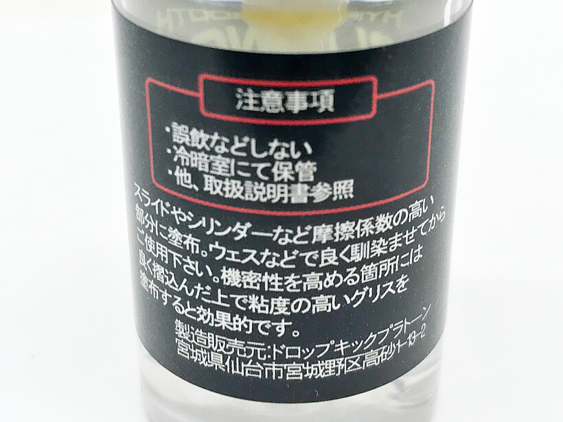 スライド、シリンダーなど摩擦係数の高い部分に塗布するだけで、劇的に作動性が向上するアイテム。