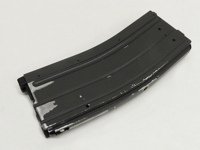 フレームロックピン近くにやや破損部位が見られます。マガジンにやや痛みが見られますがガス漏れもなく動作には問題なし。下部画像参考してください。