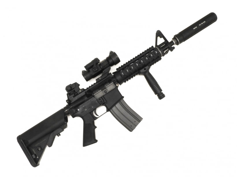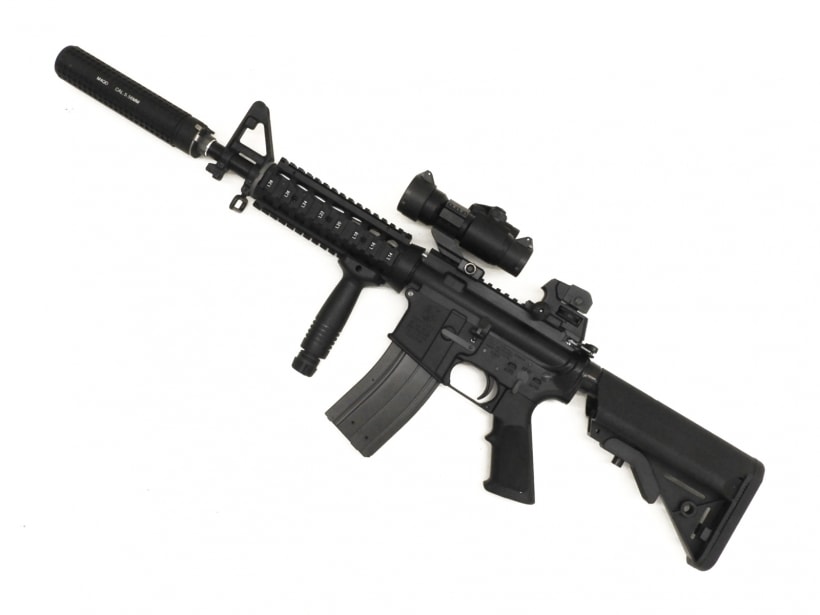 ナイツタイプのQDサイレンサー&フラッシュハイダーに加え、クレーンストック、QDリアサイト等々、米海軍特殊部隊にて使用されている 各種装備が組み込まれた、10.5インチのCQBサイズ、特殊任務向けの短銃身モデルです。