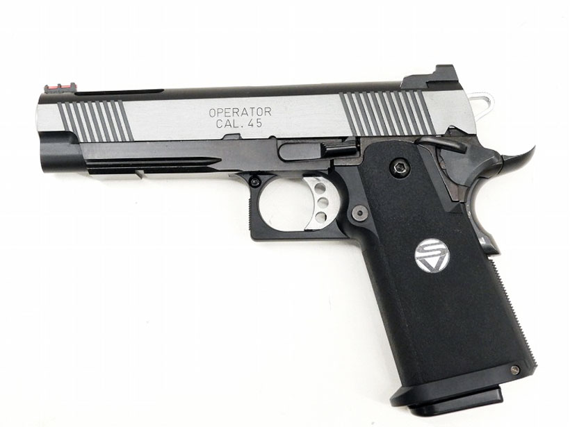 サイドポリッシュ仕上げが施されたヘビーウエイト製カスタムスライドと、20mm幅のレールを備えたフルメタル製シャーシ。視認性に優れたファイバーフロントサイトを装備。V型12ポートを備えたエキゾーストバレルは迫力満点。コッキングデバイスを兼ねたヘイニースタイルのリアサイトやデルタハンマー、アンビセフティ、ビーバーテイルグリップセフティを装備。
