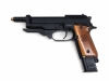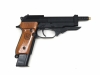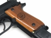 ベレッタロゴ入りの木製グリップに換装されていて雰囲気は抜群。