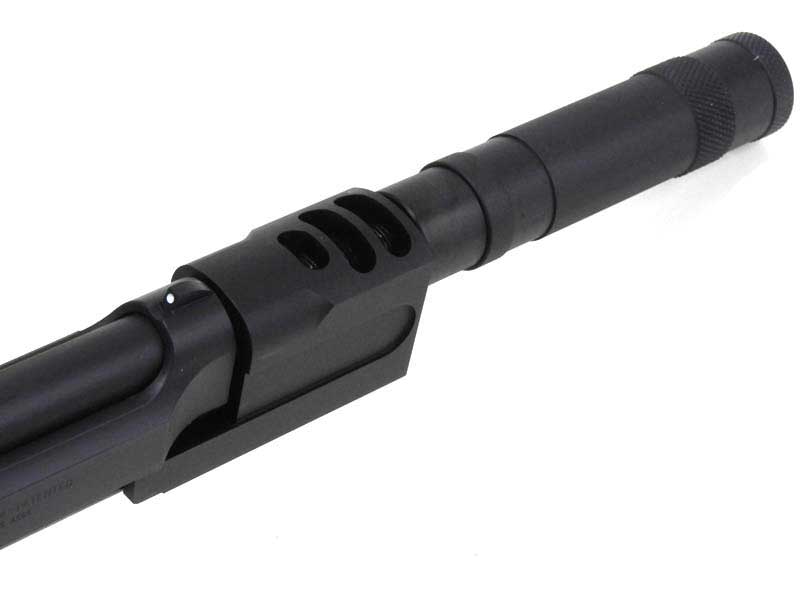 M92FS LEONのマズルに取付けられた大型のコンペンセイターは、アルミ素材から削り出して製作されたデラックス仕様。劇中プロップの形状を、切削加工ならではのシャープな造型でリアルに再現。M92FS本体は、抜群の重量感を誇るWA定番素材ヘビーウエイト樹脂を使用し、しっとりとした独特の風合いをもつ焼付け塗装、NEWブラックフィニッシュ。サイレンサーモデル。