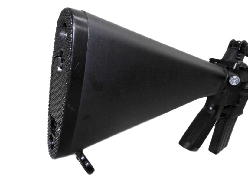 外見上最も目を引く新型の〈エンハンスドストック〉を実銃同様に装着、さらに最大の特徴としてアルミ製の〈一体型アウターバレル〉を新規に採用し、確実なフレームとの結合によりフロント部の剛性を格段に向上させている。加えてこの変更によりボディ前半部が軽量化、絶妙なトータルバランスを実現。実践に則した強度・命中精度をアップした、新世代ベーシック電動ガン「新 M4A1カービン」