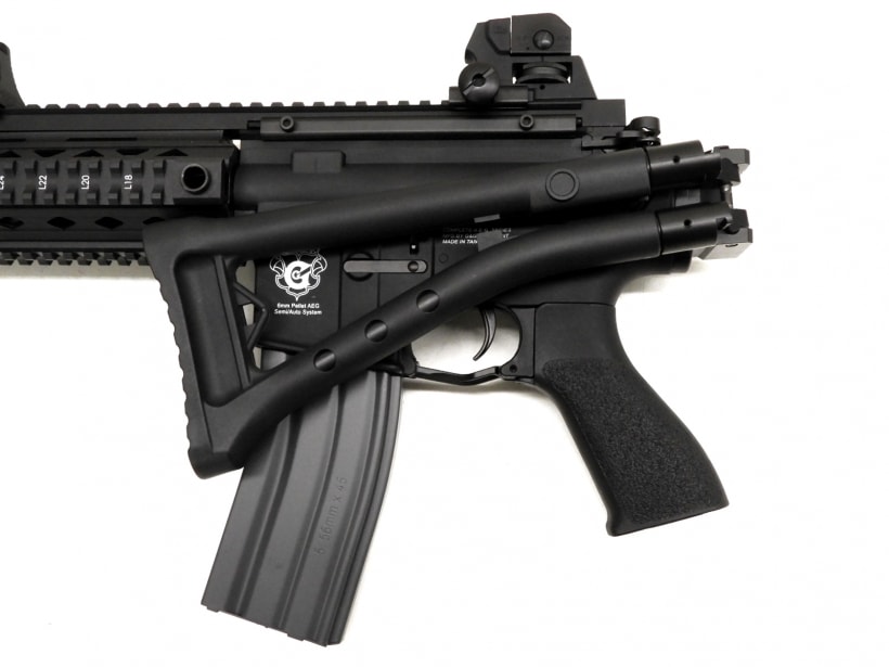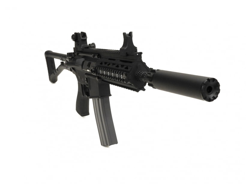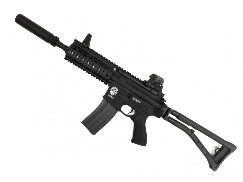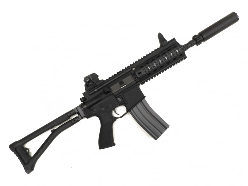 ブローバックシステムを搭載したフォールディングストックのショートバージョンM4です。サイレンサー装着のカスタム品です。
