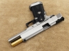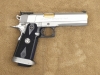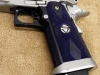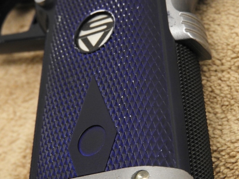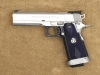 SVIオールシルバーモデルは、オーソドックスなヘビーウエイト製スライドを搭載する、ベーシックモデル。アンダーレイルのついた5インチモデル。限定ブルーグリップ仕様。付属のトリガーシューもブルーカラーでまとめられている。