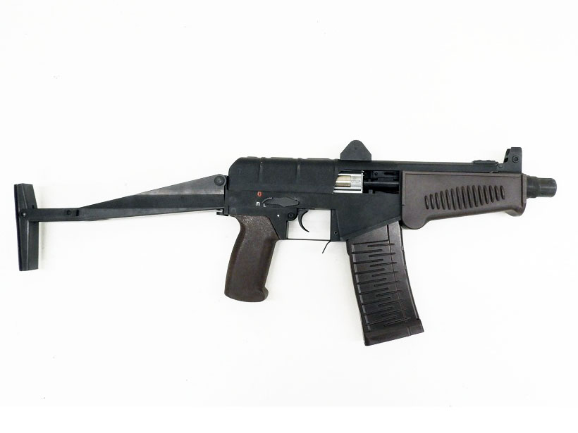 SR-3はロシア連邦の小型かつ全自動のアサルトライフル。ロシア連邦保安庁の制式採用モデル。本銃は秘匿携行を容易にするため、折り畳み式ストックやコッキングハンドルに新規の設計が行われました。アサルトライフルでありながら、小型スナイパーライフルの特徴を兼ね持っていることで、人気を呼んでいます。本モデルは9mmペアリング軸受けを採用、フルメタルボディ製となっています。