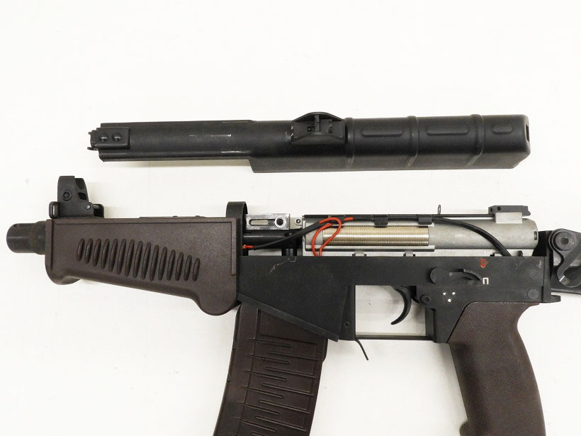 フォールディングストックとスタンダードなハンドガードでSR3Mの基礎となった銃。セレクターはセーフとオンがいわゆるAKタイプのセレクター部にあり、トリガー裏にセミとオートの切り替えセレクターをしっかりと再現しています。