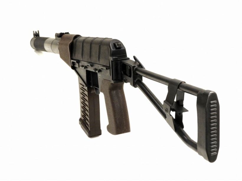 映画などでは見かけることがないのに、なぜかFPSではよく見るAS-VALのモデルアップ。金属部分フルスチールによる重量と剛性がたまらない。折りたたみストックは伸ばして固定するとびくともせず、強度的に不安に感じる要素は全くない。このまま使ってもよし、フラッシュやダットサイトなど最小限の装備でドレスアップするのもサマになりそうだ。
