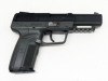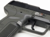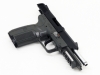 実銃同様にスライドがポリマー製。実銃ではポリマースライドの中にスチール製の強化スライドが入っている。スライド後部にはセレーションと合わせて突起があるのでスライドを引きやすくなっている。ホールドオープンしたときのスライドの長さは6センチ弱と長く、その分リコイルショックが強くなっている。またアウターバレルは東京マルイ初のアルミ製になっている。