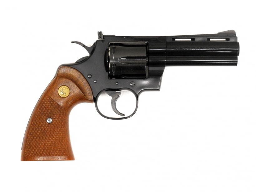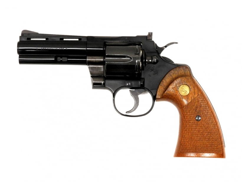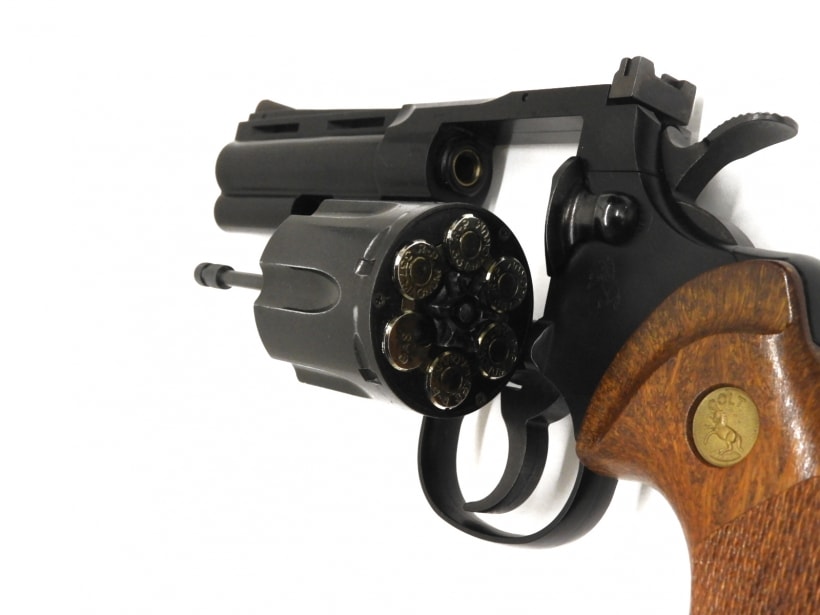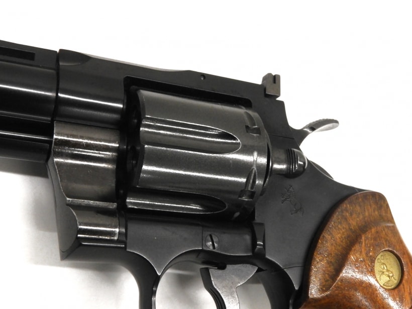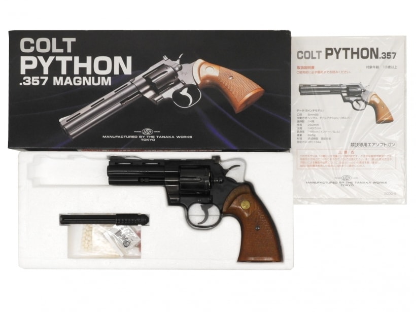 日本でも絶大な人気を誇るリボルバー・コルトパイソン。ペガサスシステム搭載のタナカ製ガスリボルバー。4インチサイズのブラックABSモデル。