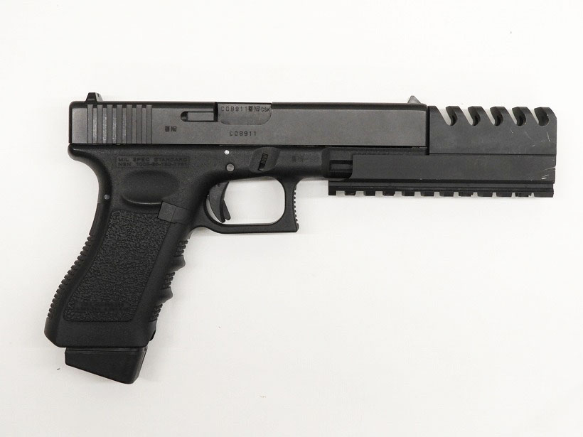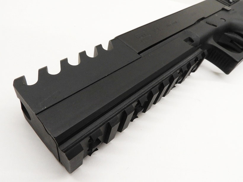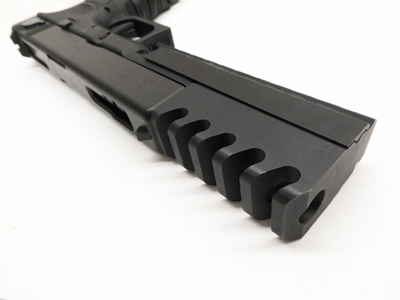 金属製大型コンペンセイター取り付け済みのG18c。マガジンバンパーも大型の物が付属。