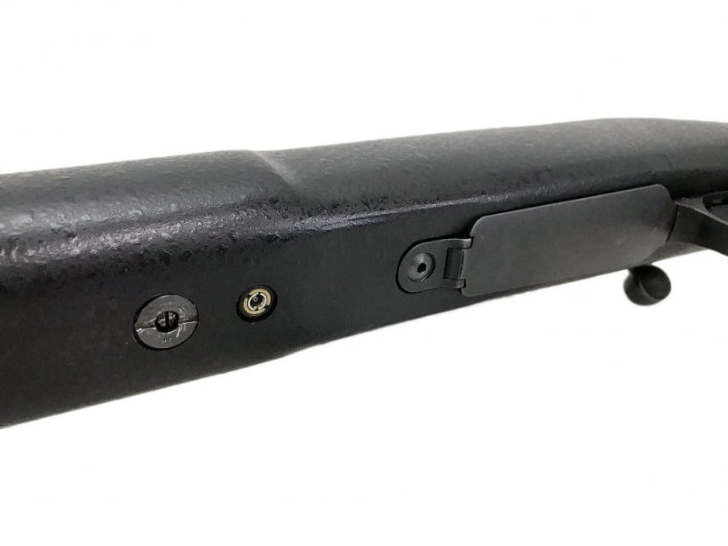真っ直ぐにスラッと伸びたバレルが特徴的なボルトアクションライフル。