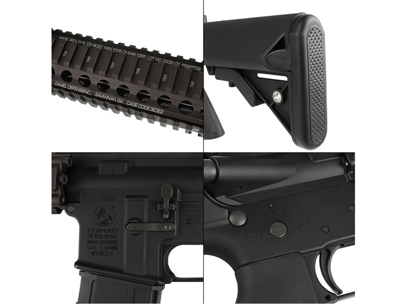 MK18 MOD1は、M4A1ロアーレシーバー、CQBR Block2アッパーレシーバーをベースとし、Daniel Defense RIS2レイルハンドガードで構成された近接レンジ用アサルトライフル。