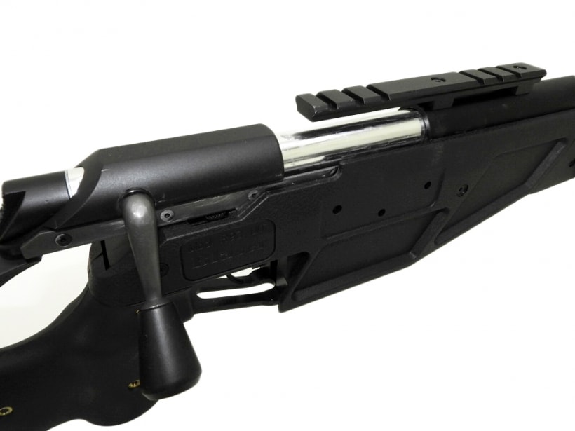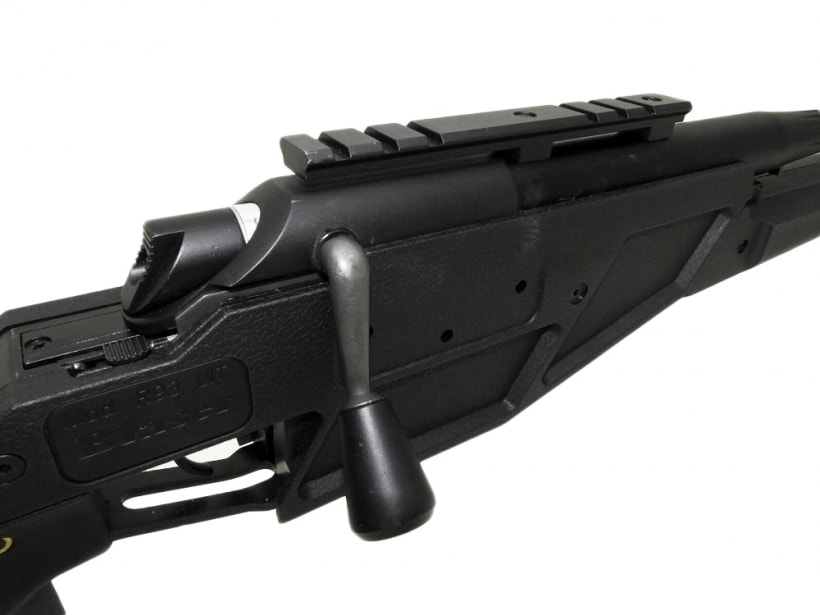 独特のボルト操作メカとスタイルで人気のある、ブレイザーR93を再現したボルトアクションエアコッキングガン。
