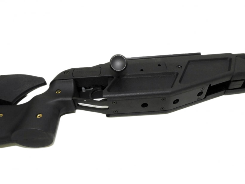 何よりもまず目に付くのはこの近未来的な外観だが、競技用ライフルの発展型なだけあって各部考え尽くされた設計となっている。最も素晴らしいのはボルトアクション時にボルトハンドルを回転させる必要がない画期的なシステム「ストレートアクション」で、ボルトアクションでこれほどの速射が出来る感覚はちょっとクセになりそうだ。