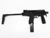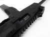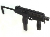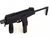 スイスにある軍警察/特殊部隊関連のメーカーにより、実践的な改良が施されたTMPシリーズの後継機がこのモデル。瞬時に展開できるスイング・ストックをコンパクトに装備し、超ローマウントのスコープレイルとサイドのピカティニーレイルのコンボ・スタイルが迫力の機能美を完成させた。