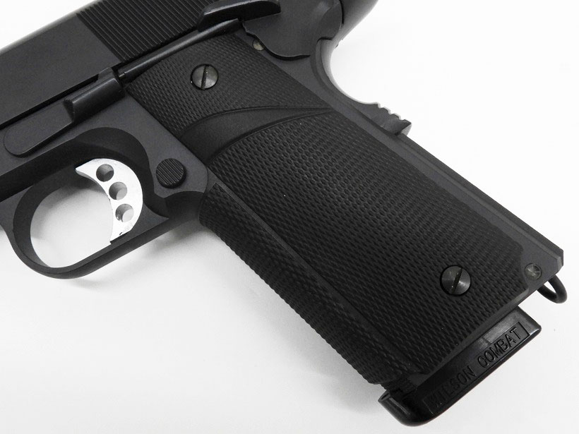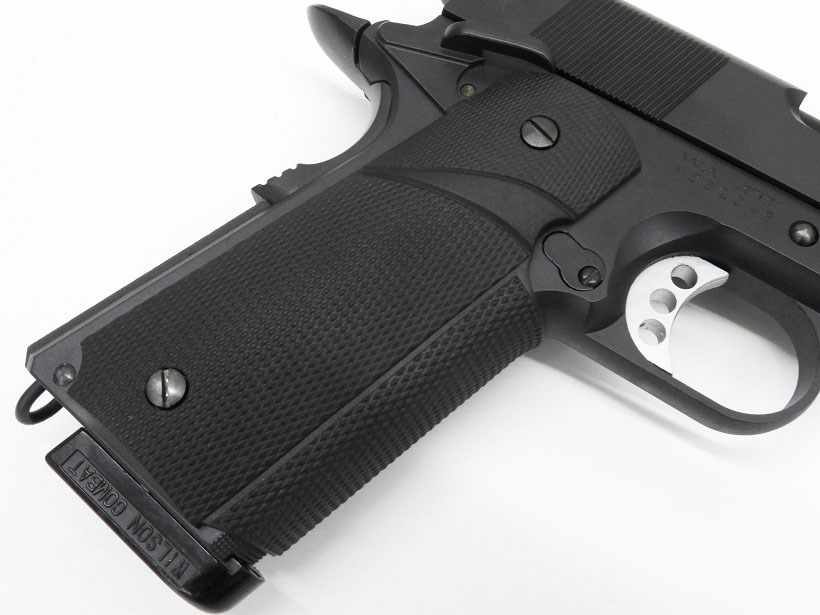 [WA] MEU ピストル リミテッドエディション ラバーグリップカスタム (中古) 製品詳細画像 ラバーグリップに換装されております。ホールド感が増す良いものです。普通は樹脂製ダイヤチェッカーグリップがついている。