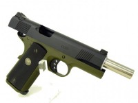 実銃では4種類のカラーオプションが存在する「ウイルソン・コンバットCQB」。その内のひとつ、ブラック/OD(オリーブドラブ)の2トーンという独特のカラーリングのモデル。