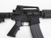 ブッシュマスターストックは6段調整型でチューブにレーザー刻印が入った最新のフィーチャーを再現。アウターバレルは、ハンドガードで隠れる部分まで完全にへヴィーバレル仕様となり、ハンドガードは放熱効果が改良された大口径タイプ。プレス製ヒートシールドと、リアルなガスチューブを内蔵。サイトはフルアジャスタブル式で、フロントポストは超精密スチール切削にて製作。付属のダミーカート型ポンチで、雰囲気たっぷりに微調整ができる。サイト基部に設けられたサイドスリングもM4カービンの特徴(グレネード装着を想定)だが、さらにストック基部にあるプレートもサイドスリング対応型を装備。