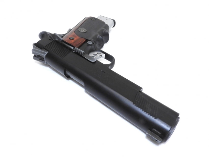 コルトM1911A1ミリタリーのフレームにスプリングフィールド社のスライドを組み合わせたモデル。