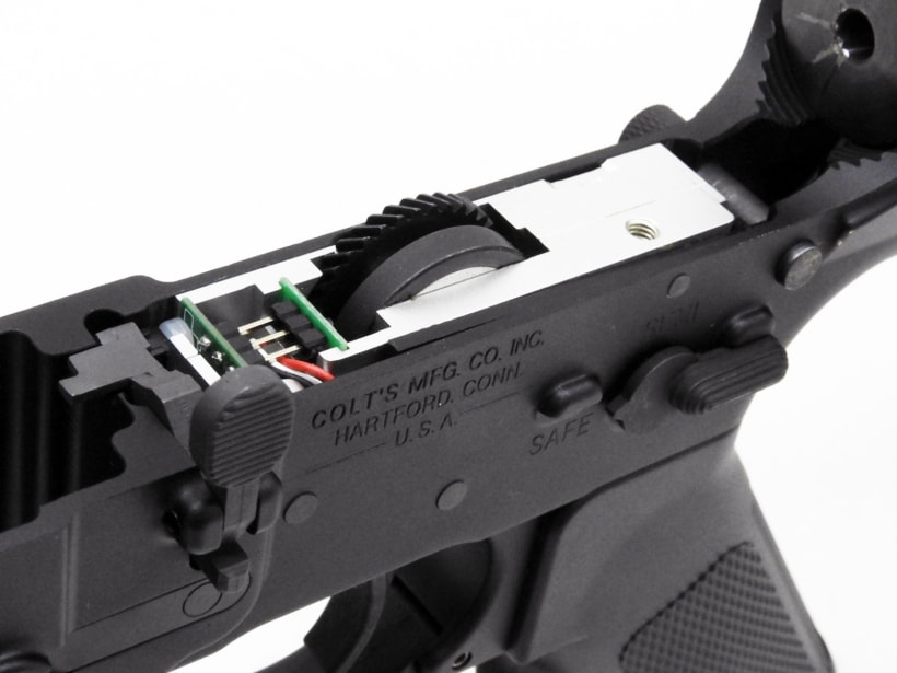 11.1Vのリポバッテリーでないとうまく動作しません。0.20gBB弾で初速95m/s、サイクル820rpm程度でした。