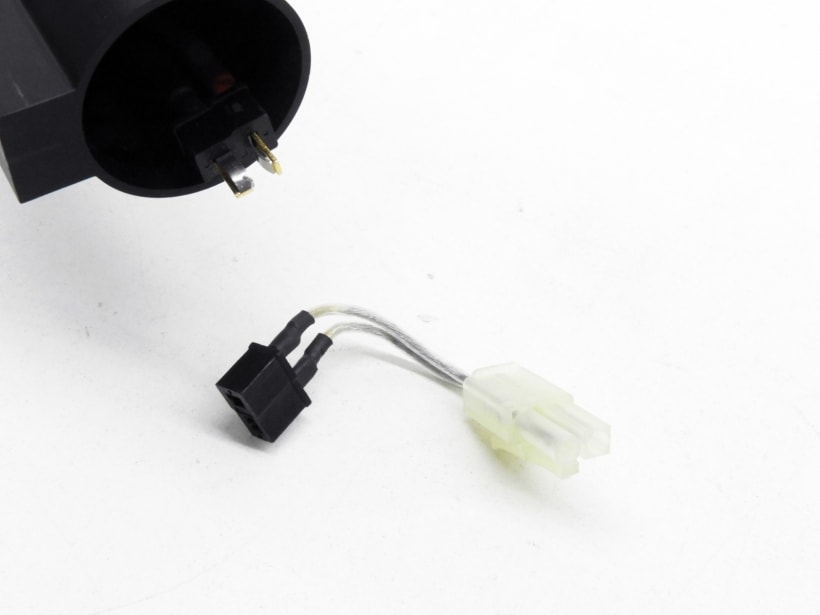 バッテリー接続はミニT型コネクターです。一般的なタミヤコネクターへの変換コネクタも付属。ストックチューブ内収納です。