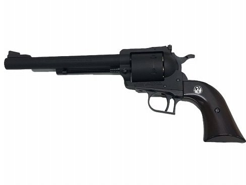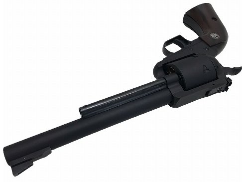 大型シングルアクションリボルバーの銘銃。8mmBB仕様。ノンフルートシリンダーや後部が角張ったトリガーガードなど特徴的。バックストラップ、トリガーガードは金属製で重量感と堅牢さアップに貢献。握った時の冷たさも雰囲気を高める。ローディングゲートを開くだけでシリンダーがフリーになる、実銃と同様の機構を再現。マウントベース付属。
