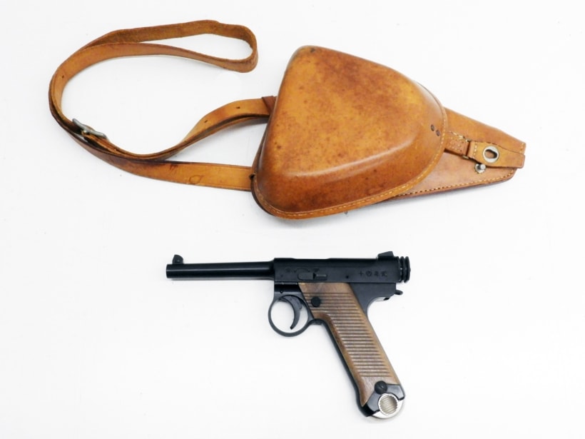 [マルシン] 南部十四年式 前期モデル 8mmBB ブローバック ABS 木製グリップ 革ホルスター付き (中古)