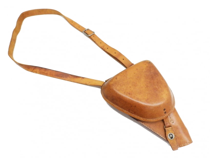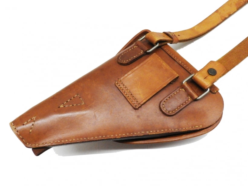 ウッドグリップ装備、年季が入って再現クオリティも高い革製ホルスター付属。