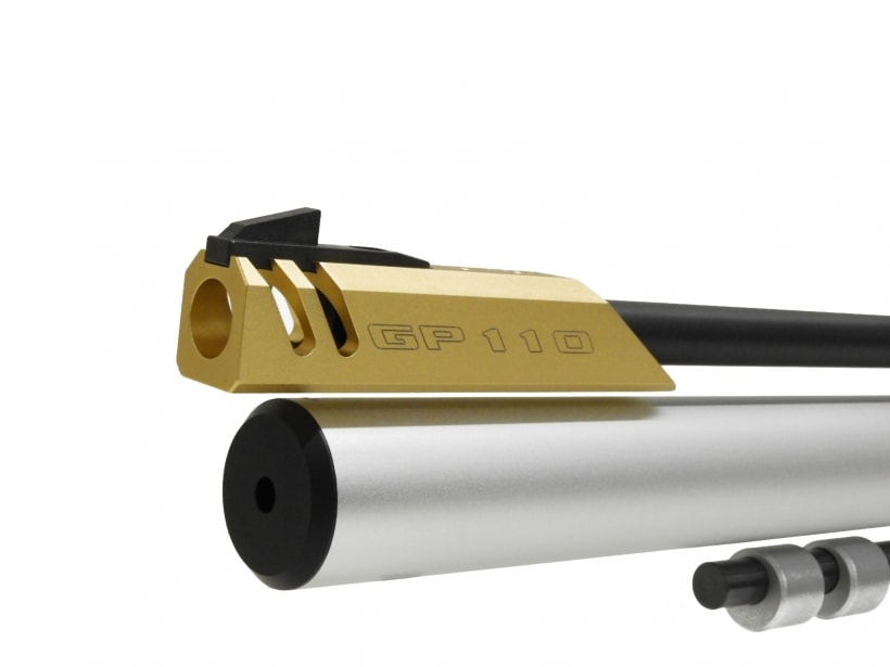 GP-110はワンアクションで次弾発射ができ、下方スイング式レバーによりスムーズなコッキングが可能になっている。またさらにセフティをオンの状態ではコッキングが出来なくなる機能も加わる。
