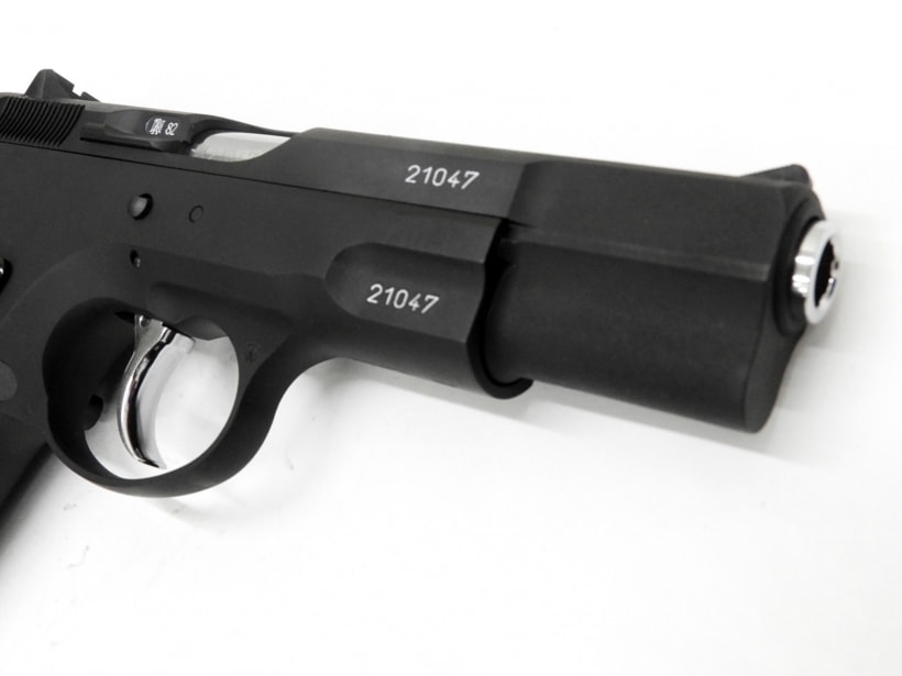 システム7化により、シリンダーの中心線とガス放出口をずらした大口径シリンダー(USP系列と同径)を、小さなスライドに搭載しており、同時にマガジンのジンク化で、ガス容量&気化効率も大幅にアップ。まさに伝説のコンバットピストルに相応しい、驚異的な作動レスポンスを誇っている。