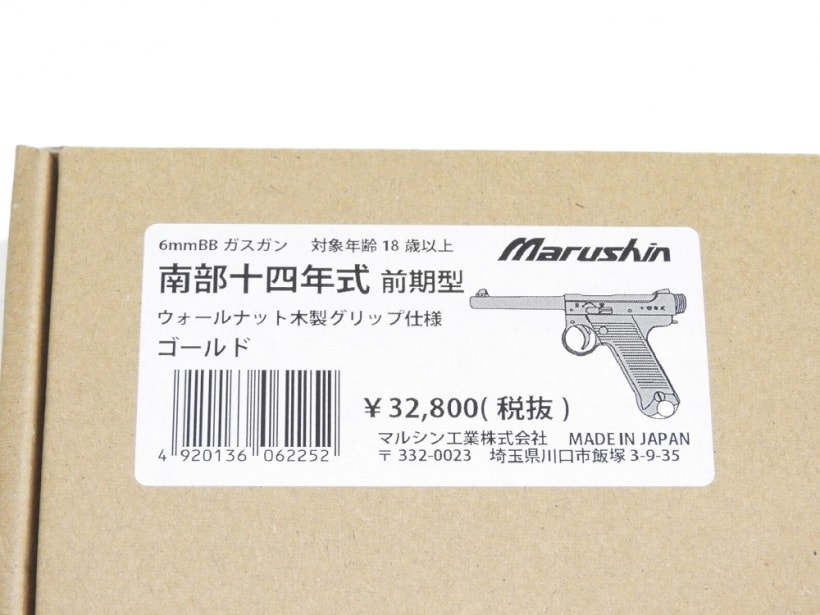 [マルシン] 南部十四年式 前期型 6mmBBガスブローバック ゴールド ウォールナット木製グリップ仕様 (未使用)