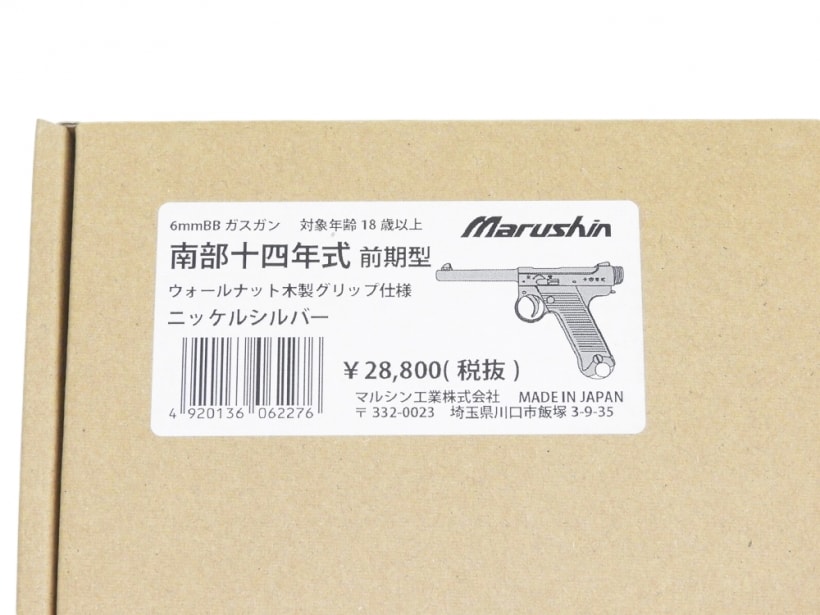 [マルシン] 南部十四年式 前期型 6mmBBガスブローバック ニッケルシルバー ウォールナット木製グリップ仕様 (新品)