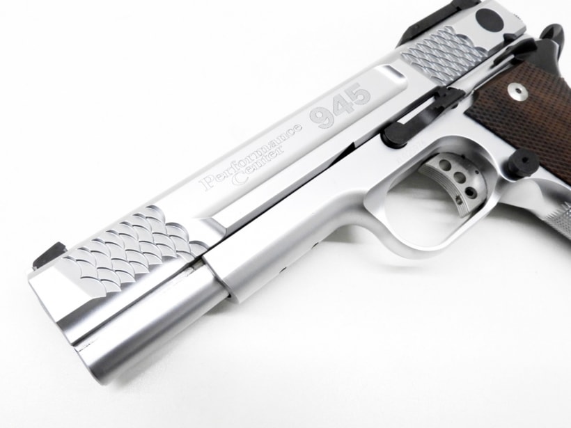 KSCメーカー活動10周年記念M945リミテッド(限定)シリーズ。特徴的なスケイルドシルバーをベースモデルにアンダーレールなどアルミ削出加工によるカスタムパーツを新採用したモデル。