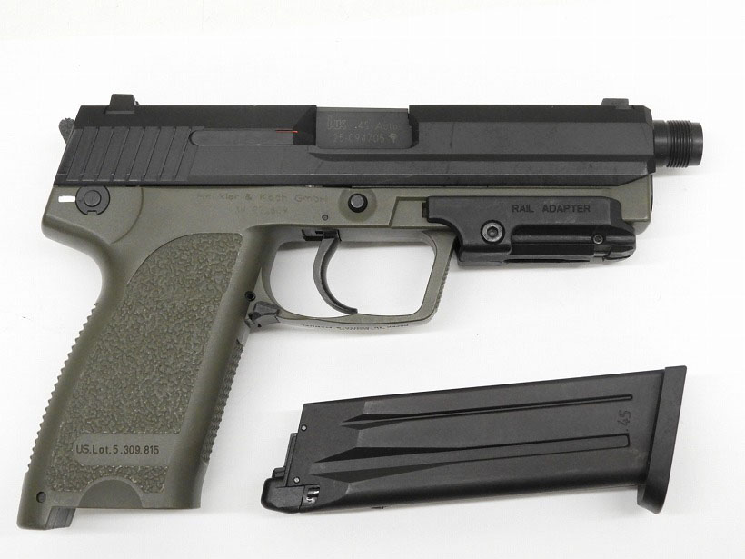 USP タクティカルカスタム。カラーフレーム“Green”サイレンサー仕様のバレル、アンダーマウントなどを装備!