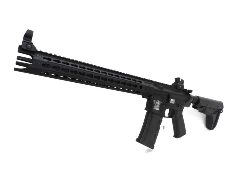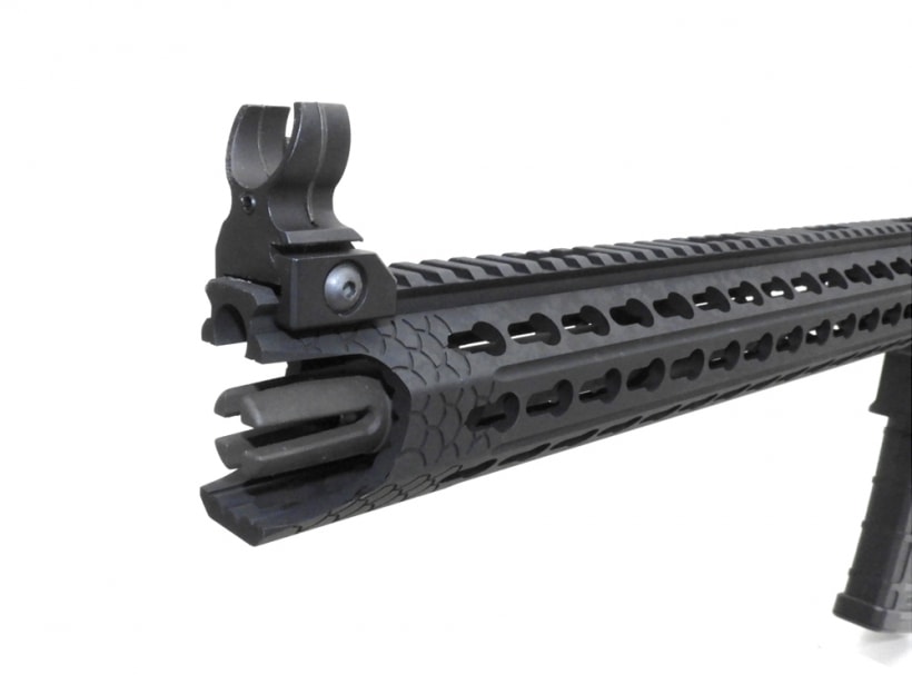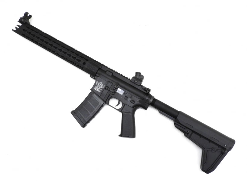 オリジナルデザインのKeymod COBRAハンドガードとコルト刻印の入ったメタルレシーバーはリアルな質感。BRSSハイサイクルで高速で重いリコイルを体感!!