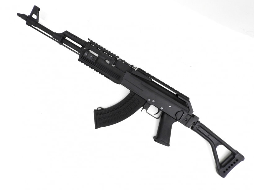 AK47にトップレールやRASハンドガードを装備させ、ストックを横に折りたたみ出来るフォールディングストックとした最新のタクティカルカービン。レシーバー、アウターバレル、ストックが金属で構成されたフルメタル電動ガンです。