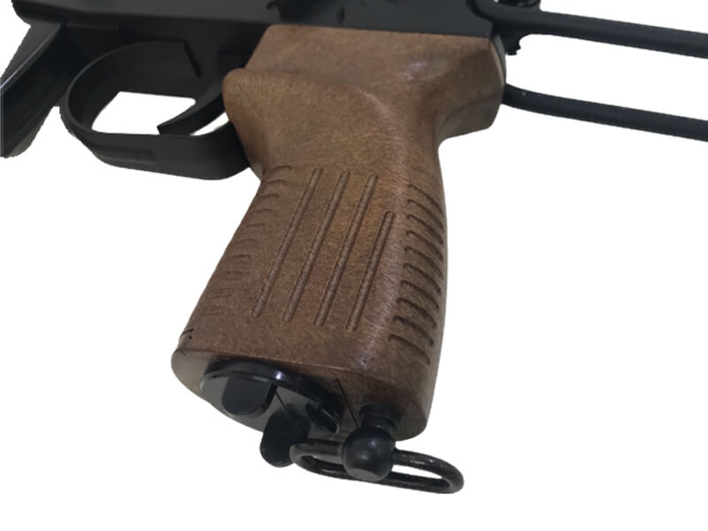 エアコキSMGと聞いてこの価格を見れば誰だってナメてかかってしまうだろうが、実際触れてみると驚きの連続である。実銃同様の操作で折畳みが行えるストックは金属製となっており、これだけでも質感と重量感は結構なもの。機関としてはHOPUPを搭載する上、エアコッキングにもかかわらず連射可能な「ラピッドファイヤーシステム」を備える。さらに初速は70m/sを軽く超えてくる。集弾性・パワー・ディテールとどれをとっても