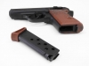 CAWで製作しているPPKは「戦前型」。その中でも、功労者などに贈られる特別なモデル『エーレンヴァッフェ』をダミーカートモデルガンに仕上げました。今回のエーレンヴァッフェのスライド左側面にある「RZM」刻印はReichszeugmeisterei の略で、ナチスの装備品検定機関を示します。今回のモデルは、昨年発売したモデルよりも実銃では少し前に生産された初期型モデルで、90°に回転させることができるセフティレバーが特徴的です。