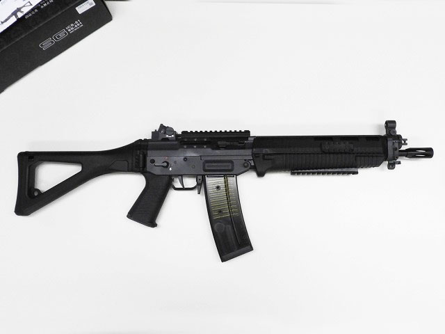 各国の軍/法執行機関で採用されるSG550のカービンバージョン 『SG-551 SWAT』。ブラックカラー。マルイ互換。マガジン2本付属。