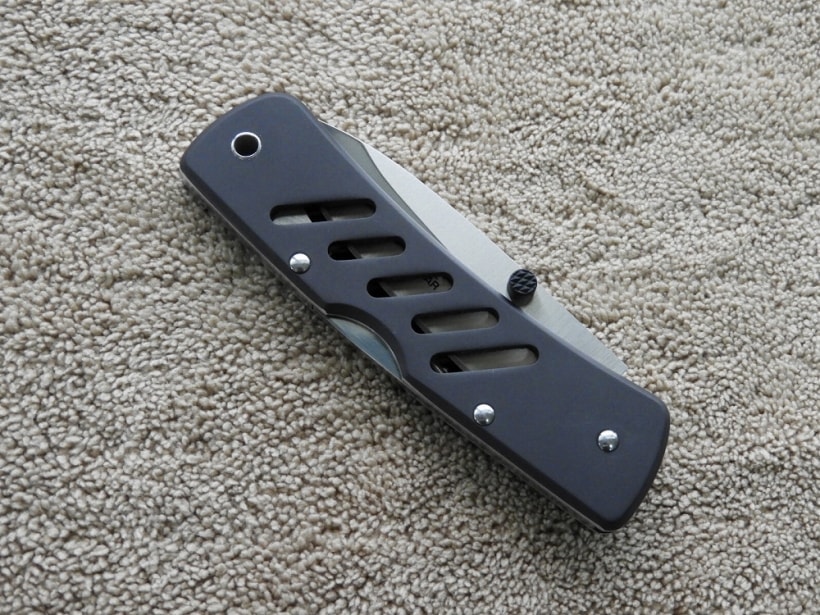 ブレードのサム・ボタンにより、片手でスピーディにブレードをオープンすることのできる、機能性に富んだフォールディング・ナイフ。ハンドルはアナライト加工を施した丈夫なアルミニウムの軽量タイプ。