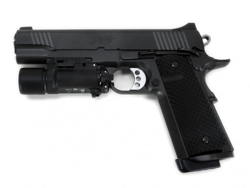 高輝度LEDウエポンライトを標準装備したデラックス パッケージ。米ロサンゼルス市警のエリート部隊が制式装備するキンバー1911をモデルアップ!