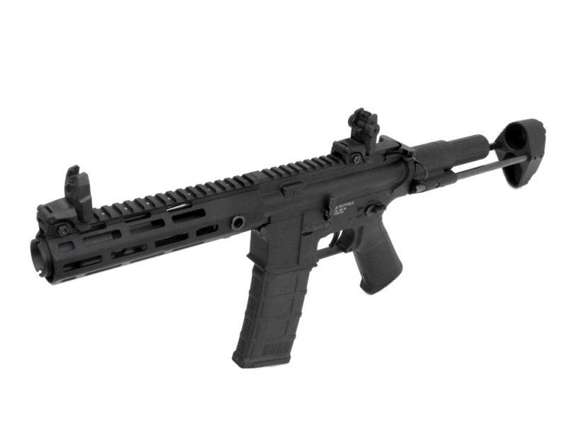 短めのアウターバレルと伸縮できるワイヤーストックを組み合わせた非常にコンパクトな電動ガン。