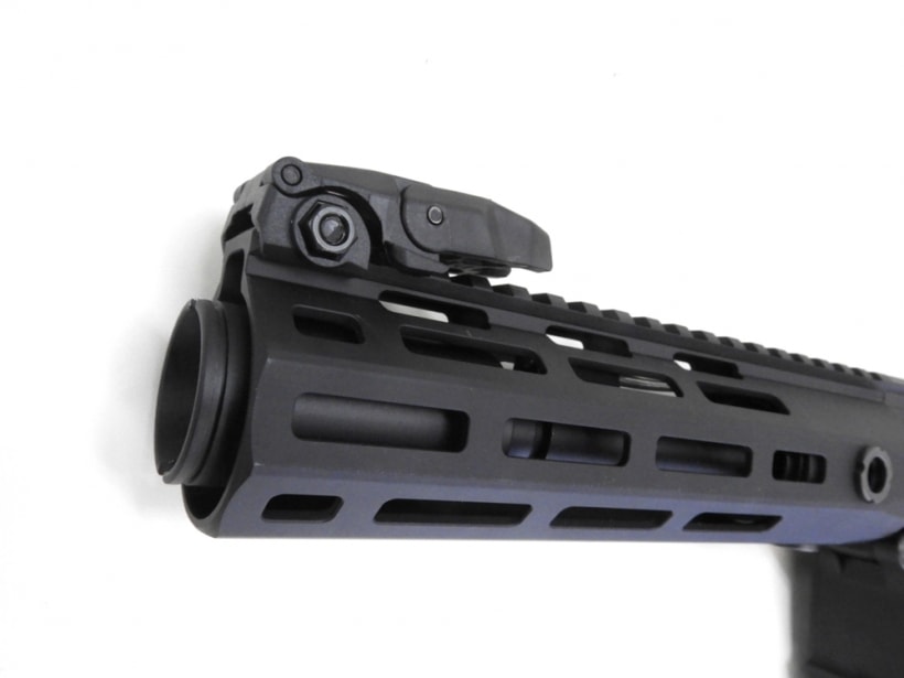 ハンドガードの中にフラッシュハイダーが入り込む形でセッティングされているインパクトのあるデザイン。