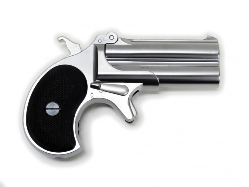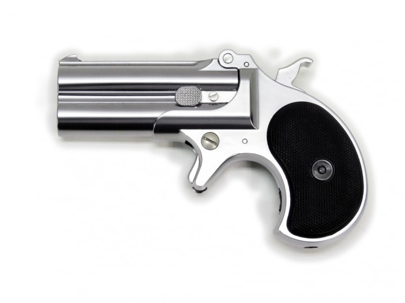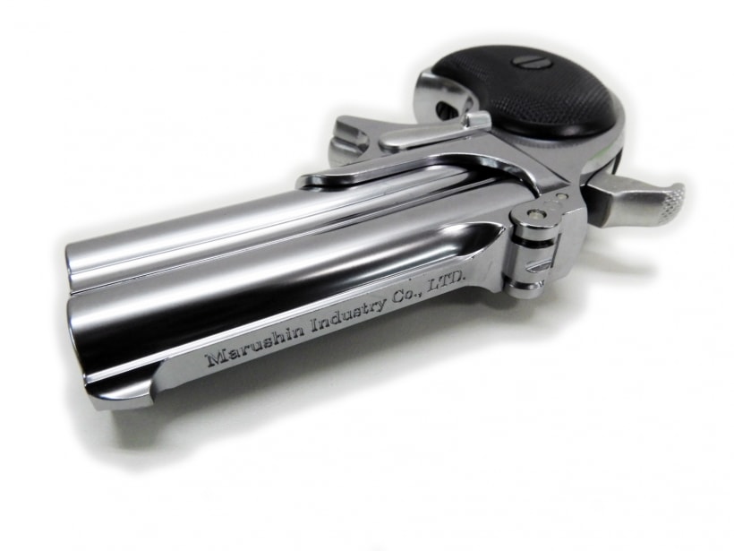超小型ピストルデリンジャー。中折れ式のガスガンで8mm BB弾を2発装填することができる。現在でも実銃は護身用として人気がある。
