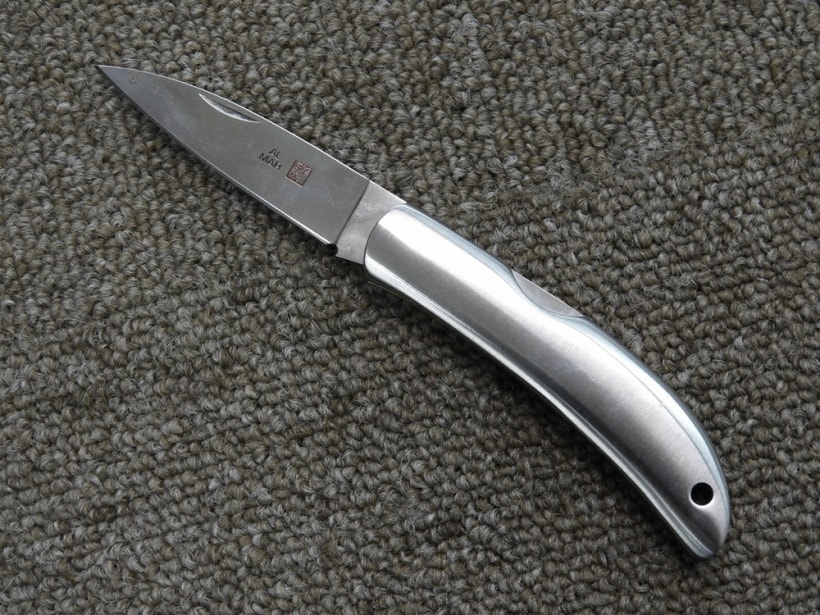 アルマー・クラシックのシリーズの一つ、ステンレスハンドルの「紳士用」フォールディングナイフ。