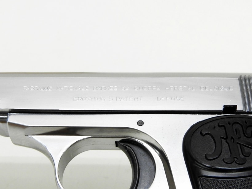 ジョン・ブローニングがベルギーのFN社に招かれて設計した傑作小型拳銃。服の下から取り出す際、極力引っかからないように設計されている。